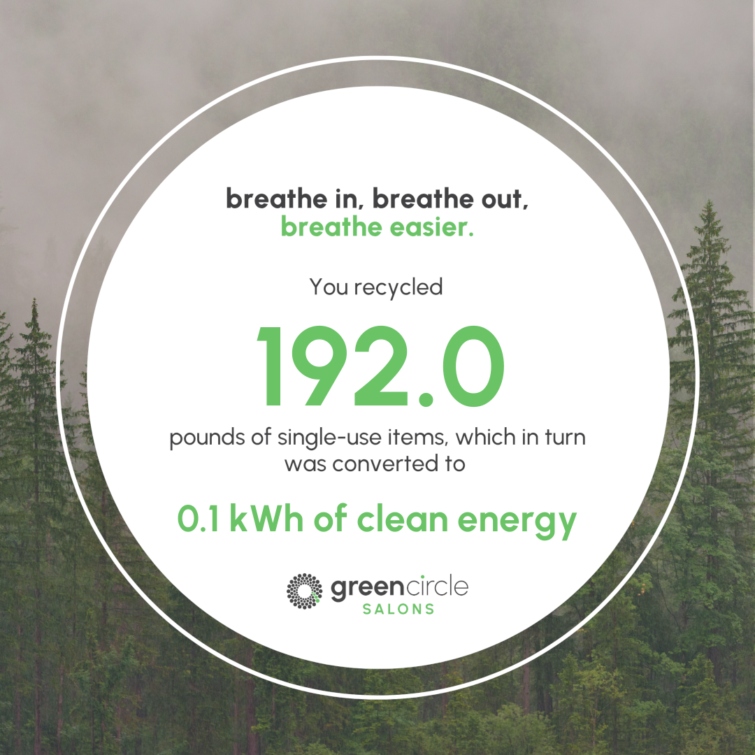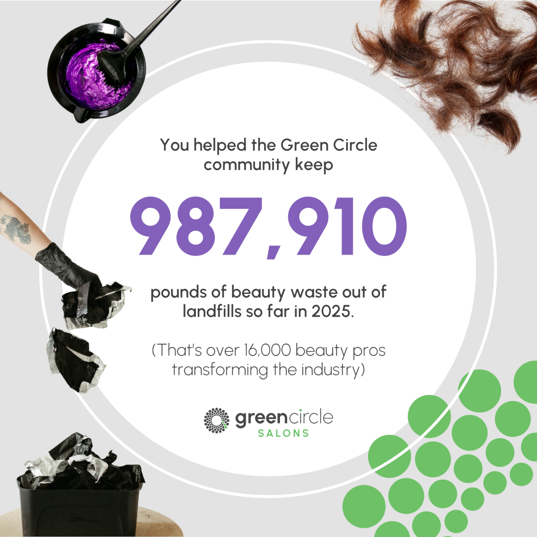 The beauty industry produces over 877 pounds of waste each minute. As a Green Circle Salons partner, we are passionate about doing our part for our planet and erasing our carbon footprint. Each of our services include a $2 eco-fee, which is used to offset the cost of our Green Circle Salon certification. We are able to reclaim and recycle up to 95% of our beauty waste through this program, including hair clippings, highlight foils, excess hair color, and all recyclables! We are proud to be a carbon-neutral salon! Ask you stylist for more information, or see the Green Circle Salons website.